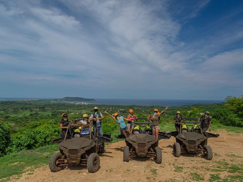 Soar through the jungle on our epic 10-line canopy tour high in the Sierra Madre mountains — then switch gears and take on the trails aboard a powerful 4-seater RZR.